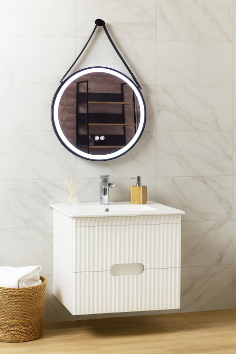 Set Baza front MDF cu Lavoar si Oglinda cu iluminare LED, seria 009, suspendata, cu sertare, 60 cm, alb